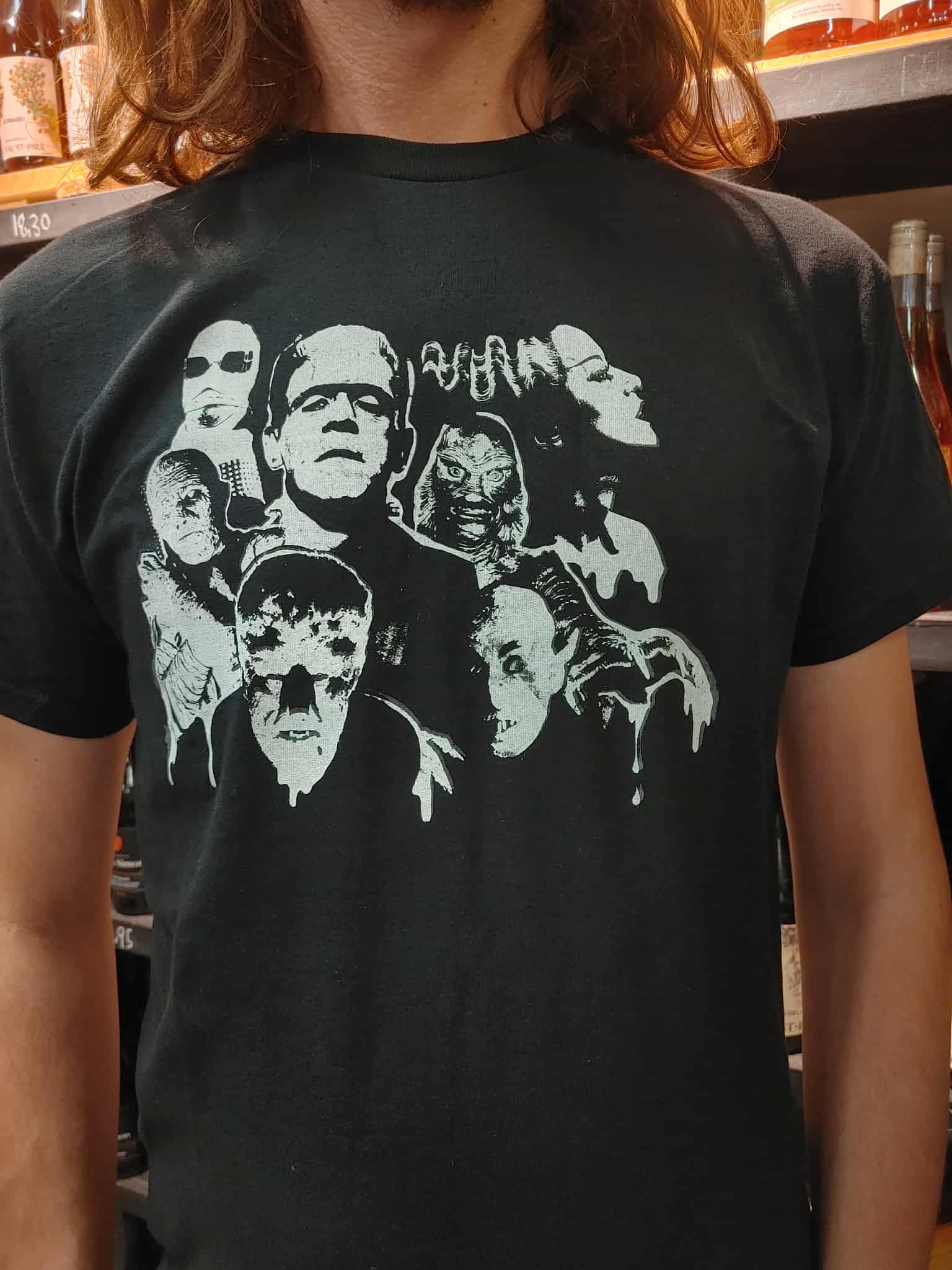 Trouvez les monstres iconiques qui ont faconnés vos cauchemards sur ce tshirt fait pour les fans du cinéma de l’horreur!